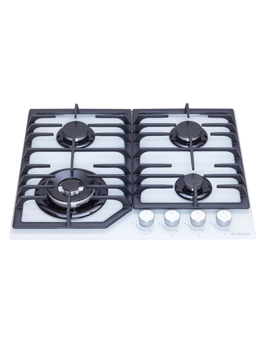 Газовая варочная поверхность Perfelli HGG 61694 - идеальное соотношение качественных комплектующих и функциональности. Материал поверхности изготовлен из жаропрочного закаленного стекла. Варочная панель оборудована четырьмя газовыми горелками: одной WOK с мощностью - 3.8 кВт, двумя средней мощности и одной вспомогательной.