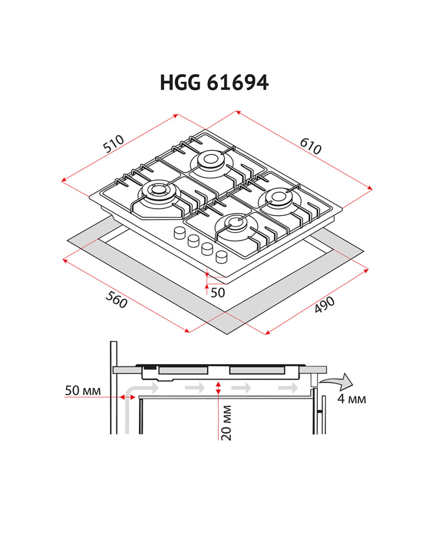 Прибор оснащен функцией электроподжига в ручках управления, системой безопасности "газ-контроль", а также WOK горелкой - для вашего удобства в приготовлении блюда. Эргономичное расположение горелок обеспечивает дополнительный комфорт при использовании нескольких зон одновременно. Также большим плюсом будут долговечные и устойчивые к деформации чугунные решетки в количестве двух штук. Они легко снимаются и очищаются.