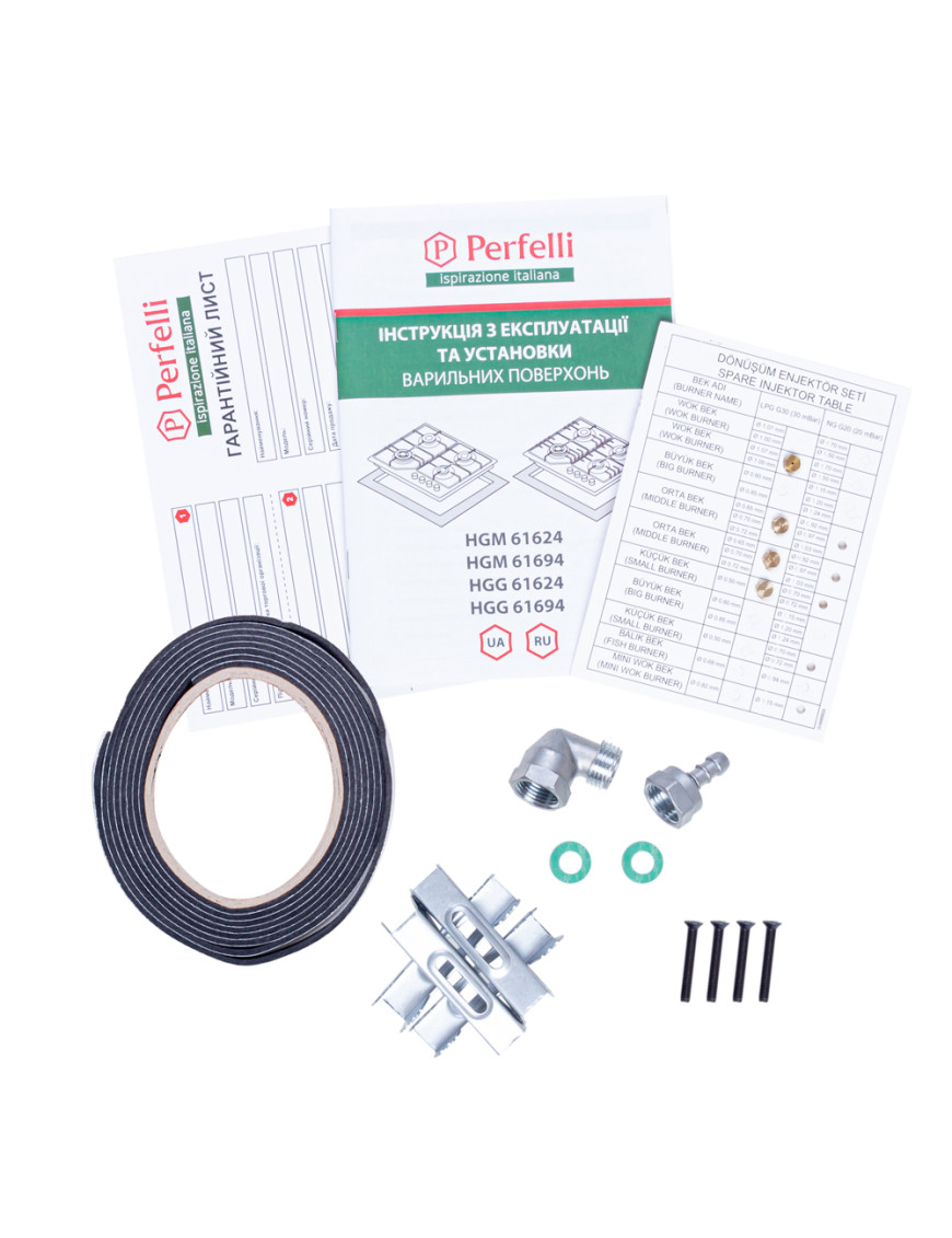 Инструкция/Гарантийный талон/Микрофиша/Монтажный комплект/Переходник на баллонный газ/Шнур с вилкой |