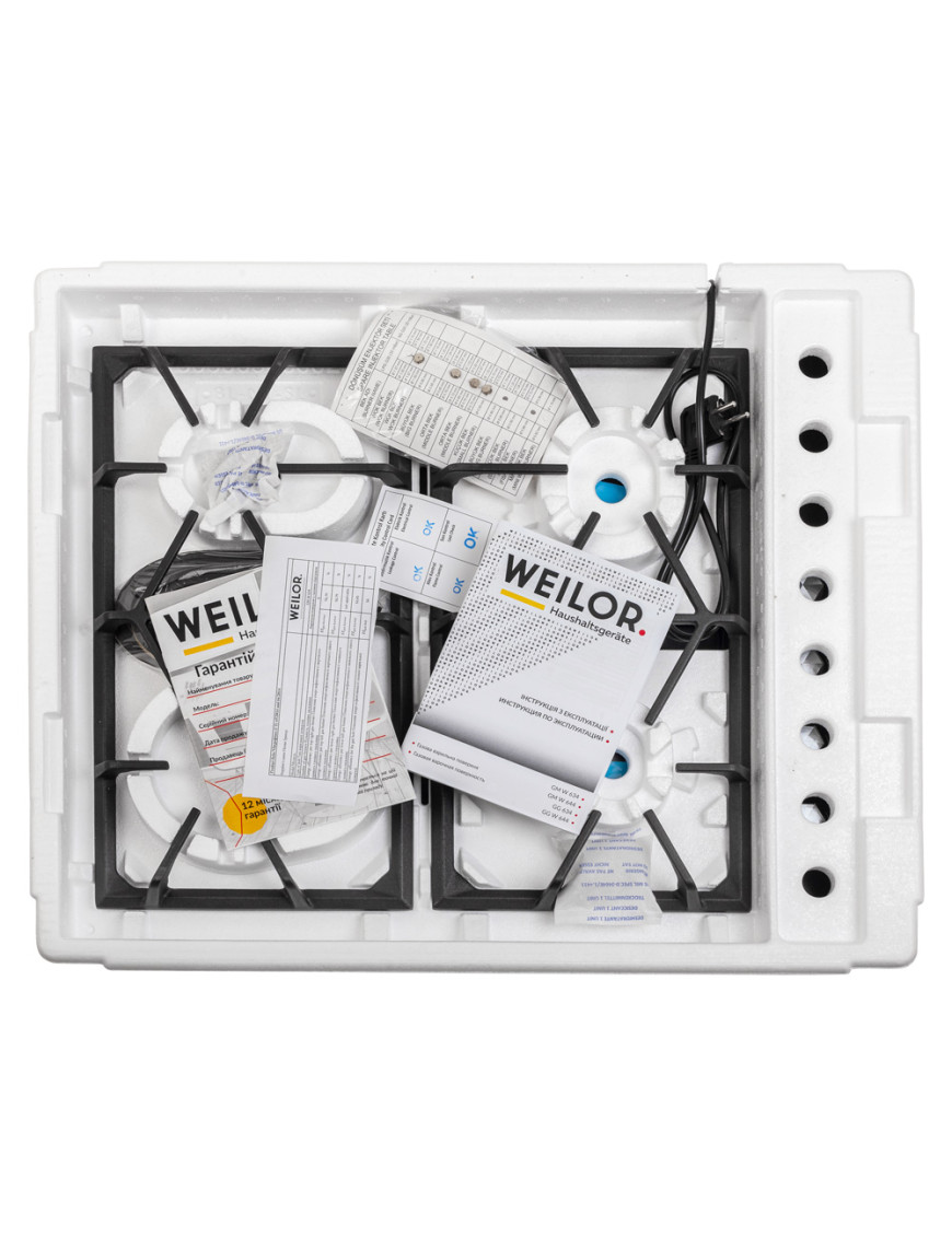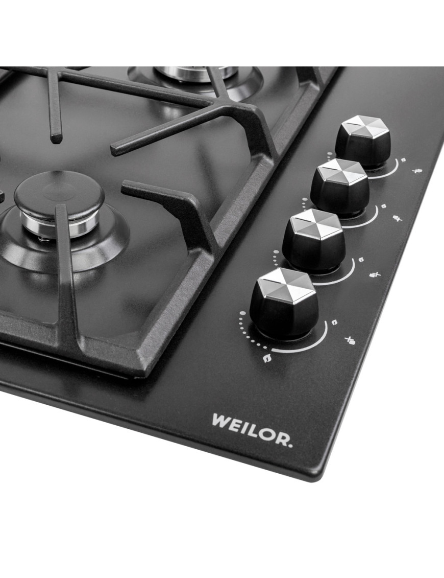 - Варочные поверхности Weilor оснащены системой "газ-контроль", которая автоматически блокирует подачу горючего вещества при отсутствии пламени и обеспечивает максимальную безопасность пользования прибором.