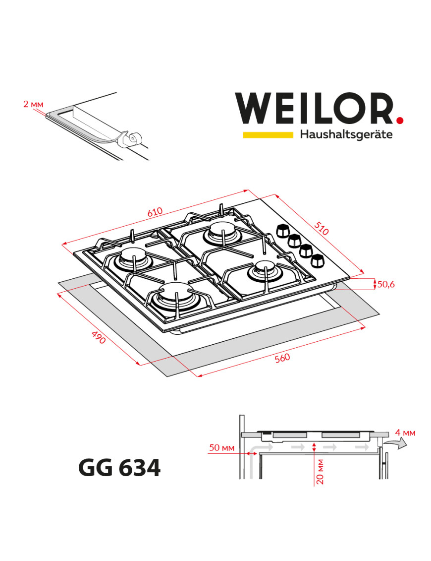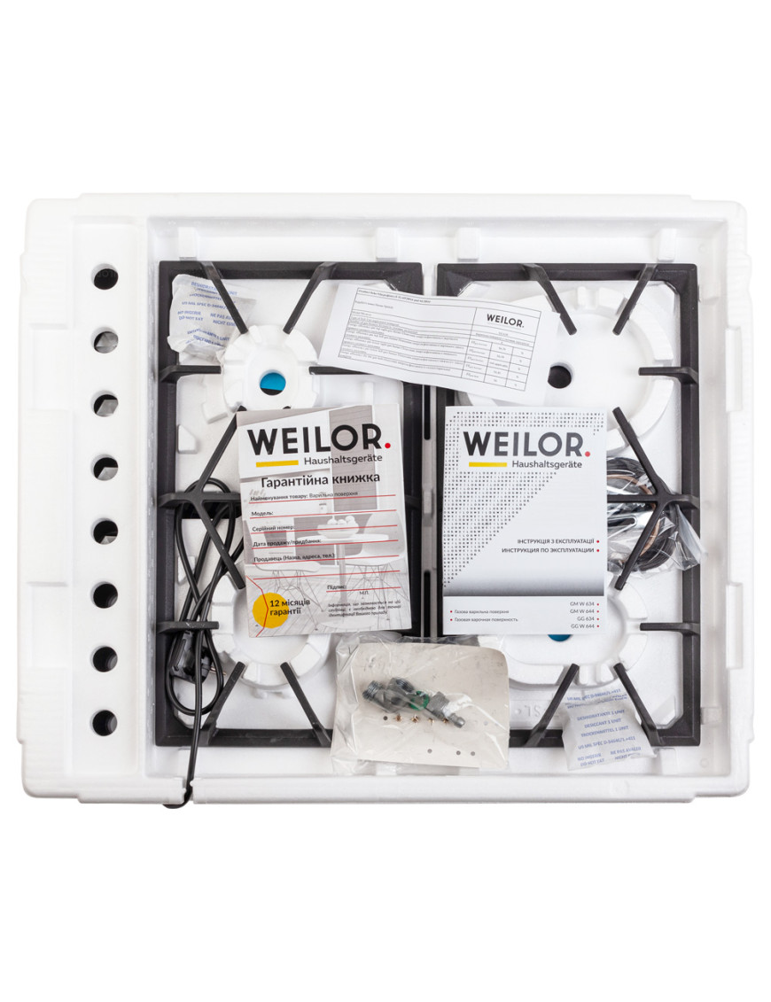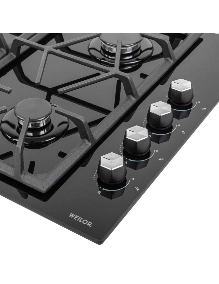 - Варочные поверхности Weilor оснащены системой "газ-контроль", которая автоматически блокирует подачу горючего вещества при отсутствии пламени и обеспечивает максимальную безопасность пользования прибором.