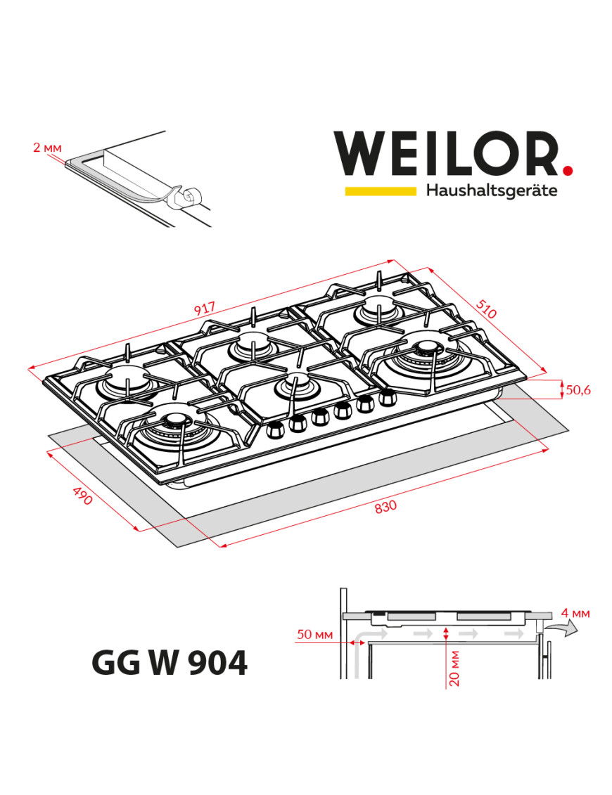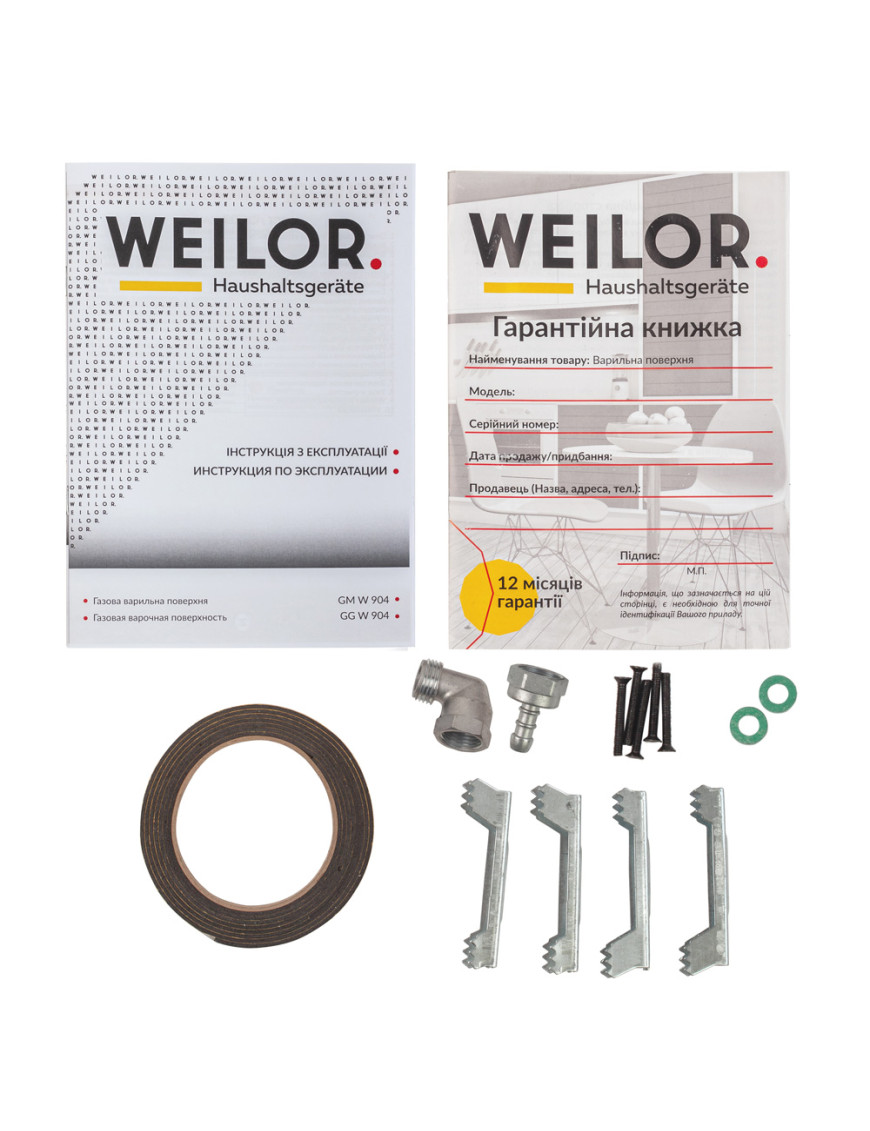 - Судочные поверхности Weilor оснащены системой "газ-контроль", которая автоматически блокирует подачу горючего вещества при отсутствии пламени и обеспечивает максимальную безопасность пользования прибором.