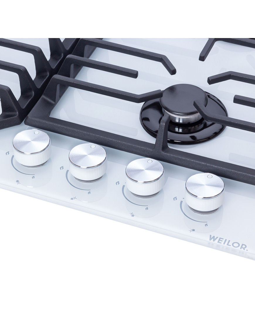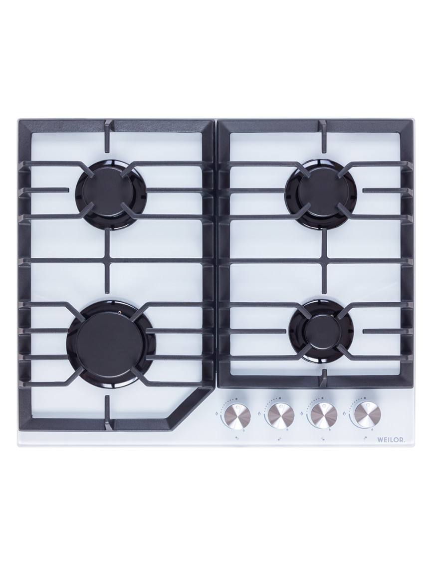 - Варочные поверхности Weilor оснащены системой "газ-контроль", которая автоматически блокирует подачу горючего вещества при отсутствии пламени и обеспечивает максимальную безопасность пользования прибором.