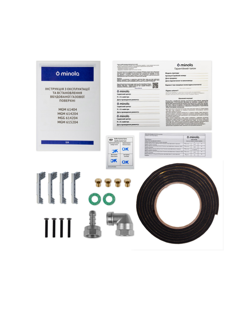 Инструкция/Гарантийный талон/Микрофиша/Монтажный комплект/Переходник на баллонный газ/Шнур с вилкой |