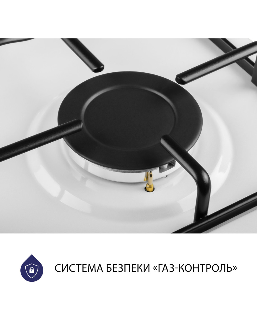 При выборе газовой поверхности стоит учитывать многие моменты, и один из самых важных - безопасность. Данная модель оборудована функцией "газ-контроль", поэтому, если вдруг происходит затухание пламени в конфорке, подача газа автоматически прекращается. Эта система безопасности предотвращает утечку газа.