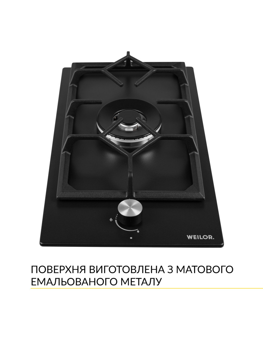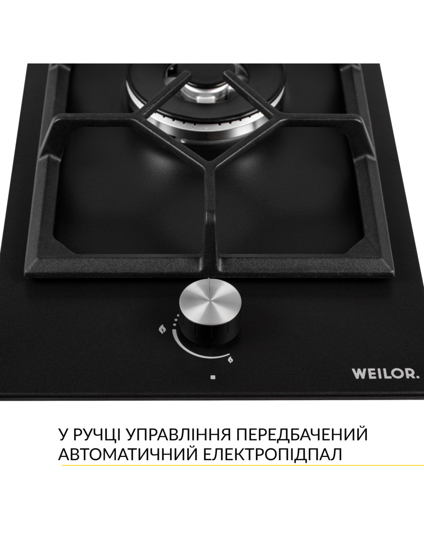 Варильная поверхность WEILOR GM W 314 BL оборудована системой безопасности "газ-контроль", которая автоматически блокирует подачу горючего вещества при отсутствии пламени и обеспечивает максимальную безопасность пользования устройством. Эта функция предотвращает утечку газа.