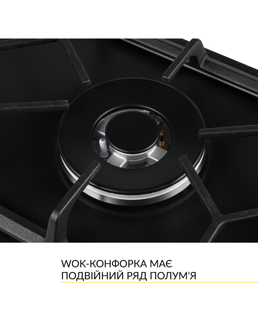 - Кварочная поверхность оборудована одной конфоркой. Это WOK-конфорка SABAF с высокой мощностью - 3.8 кВт/ч, которая имеет два ряда пламени. Она изготовлена из итальянских комплектующих. Главные преимущества горелок SABAF это высокая энергоэффективность, надежность и долговечность. WOK-конфорка с двумя рядами пламени позволяет готовить блюда значительно быстрее, потому что она нагревает блюдо сильнее, при этом распределяя тепло равномерно. Это позволяет готовить блюда с большим количеством ингредиентов и использовать более широкий выбор рецептов. Геометрия индивидуальной решетки варочной поверхности, изготовленной из высококачественного чугуна, идеально дополнит интерьер вашего кухонного помещения. Чугун легко очистить от загрязнений, которые образовались в процессе приготовления пищи.