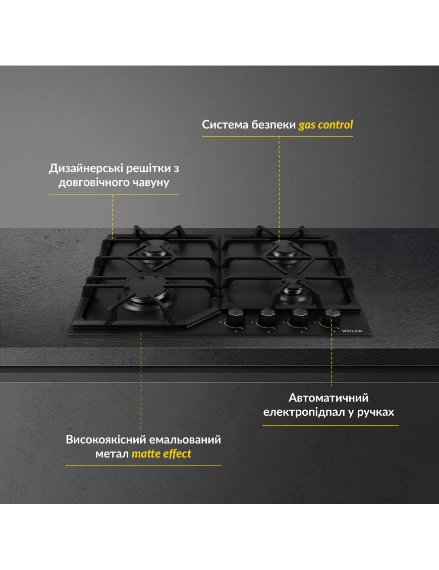 Варочная поверхность газовая Weilor GM 604 BL Weilor GM 604 BL