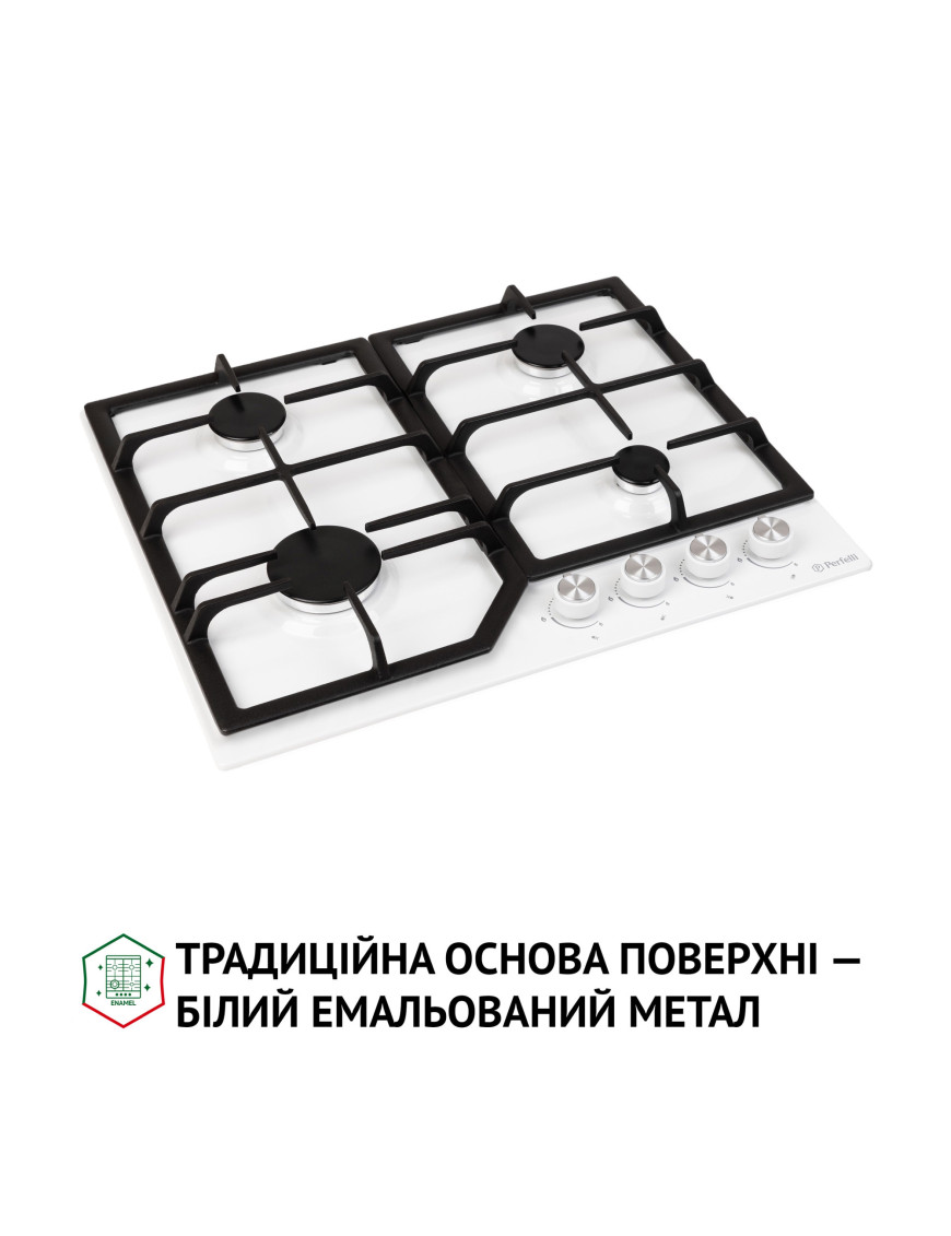 Преимуществом модели Perfelli HGM 61424 WH является ее экономичность и долговечность. Если в процессе приготовления пищи что-то случайно выкипит, специальные бортики не дадут жидкости просочиться за края, а саму поверхность вы сможете очистить легко и быстро. Кварочная поверхность Perfelli HGM 61424 WH изготовлена из высококачественного белого эмалированного металла. Этот материал очень устойчив к коррозии, механическим повреждениям и перепадам температур.