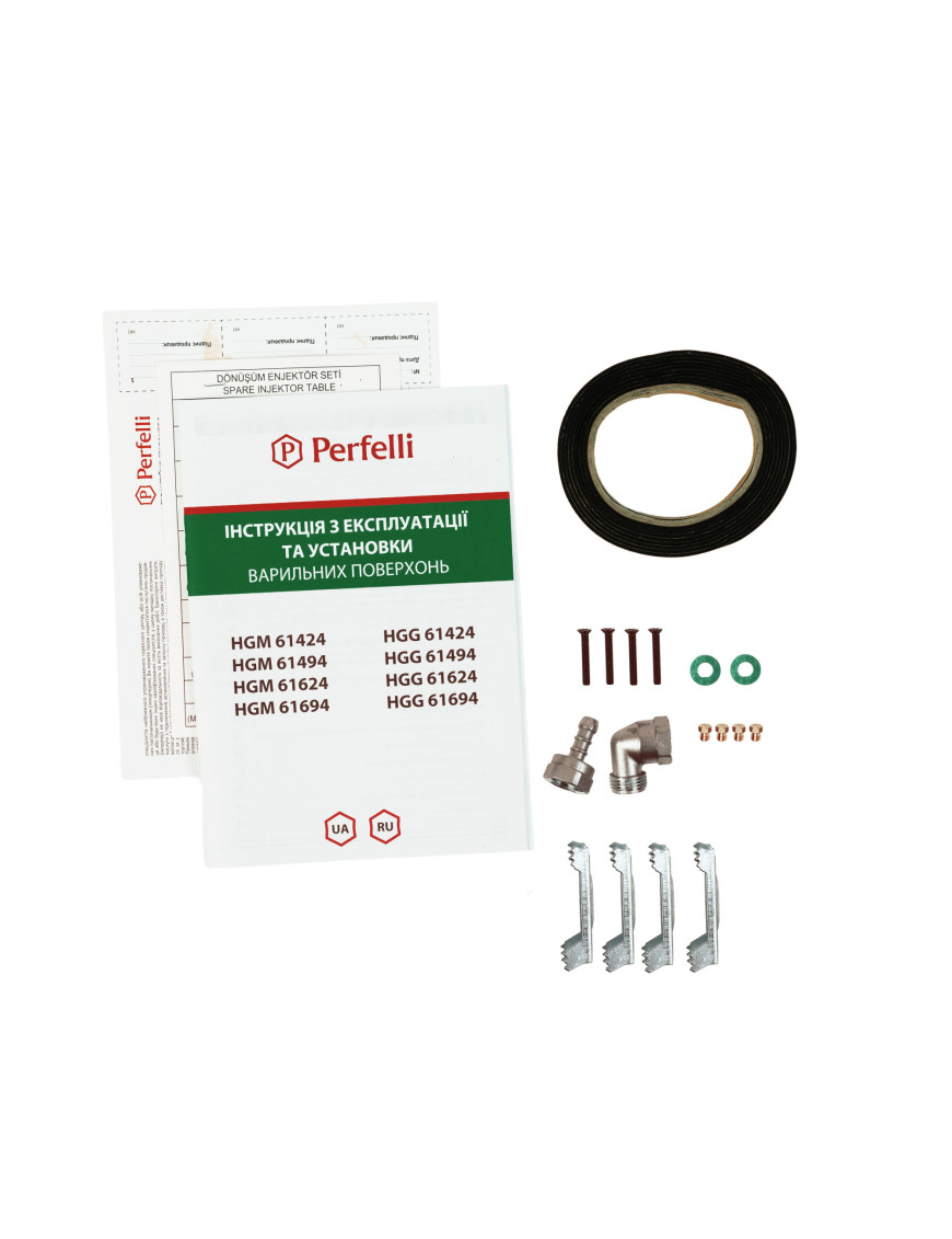 Инструкция/Гарантийный талон/Микрофиша/Монтажный комплект/Переходник на баллонный газ/Шнур с вилкой |