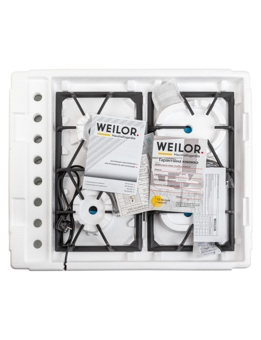 - Варочные поверхности Weilor оснащены системой "газ-контроль", которая автоматически блокирует подачу горючего вещества при отсутствии пламени и обеспечивает максимальную безопасность пользования прибором.