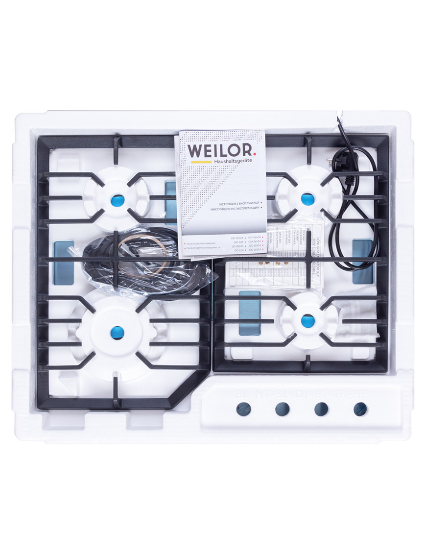- Варочные поверхности Weilor оснащены системой "газ-контроль", которая автоматически блокирует подачу горючего вещества при отсутствии пламени и обеспечивает максимальную безопасность пользования прибором.
