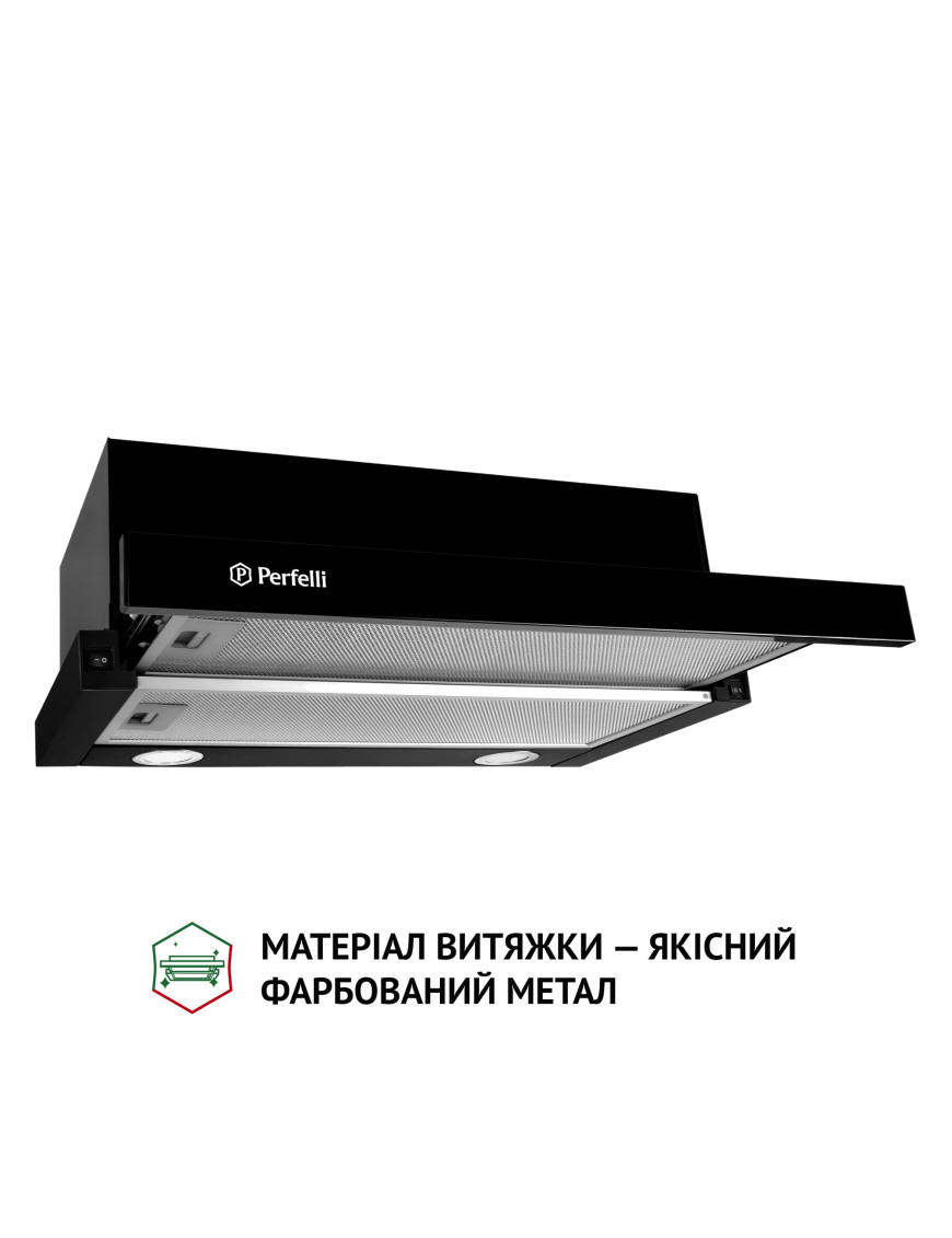 Телескопическая кухонная вытяжка Perfelli TL 6212 BL 700 LED обладает эргономичными свойствами, поэтому позволяет рационально использовать пространство в зоне над варочной поверхностью. Конфигурация модели включает: