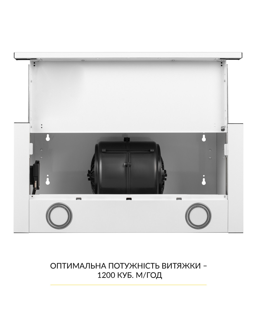 Телескопическая вытяжка WEILOR WT 67 WH эффективно справится с возложенной на нее задачей. В вытяжке установлен двигатель высокой мощностью 230 Вт, который обеспечивает производительность до 1200 м3/час. Этого достаточно для качественной вентиляции воздуха на кухне большой площади.