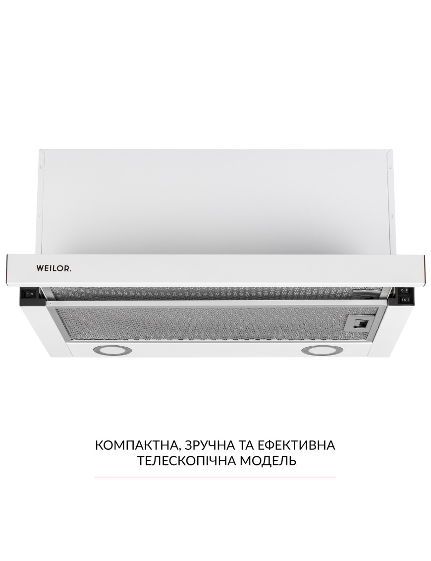 Благодаря великолепной эргономике, которой наделена вытяжка WEILOR WT 67 WH, она подойдет к любой кухне. Дизайн телескопических вытяжек привлекателен за счет простоты и лаконичности. Вытяжка данной модели придаст элегантности вашему интерьеру, а также некоторой утонченности и стиля. Практически весь корпус телескопической вытяжки спрятан внутри навесного модуля, а на виду остается только декоративная выдвижная панель.