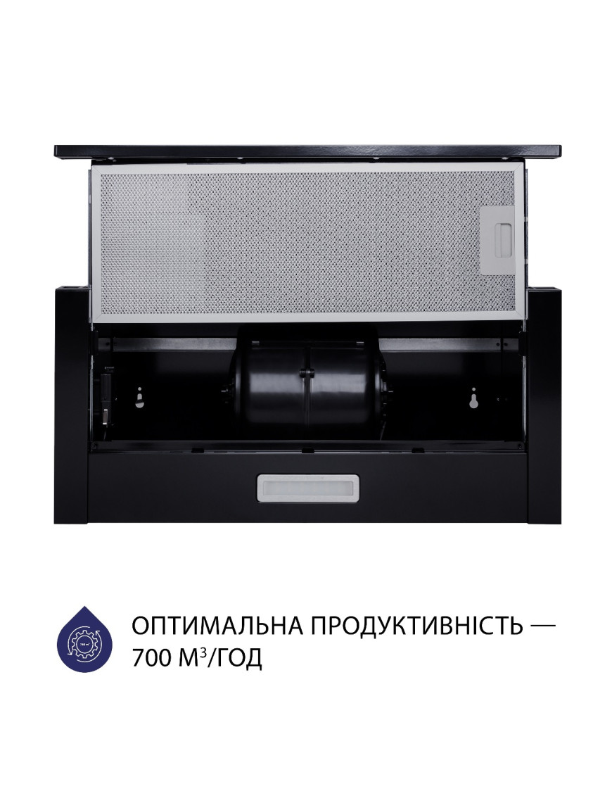 Телескопическая вытяжка станет функциональным и стильным дополнением вашей кухни. За счет конструкции модели короб прячется в шкаф, поэтому видно будет только декоративную выдвижную панель Модель имеет надежные жировые алюминиевые фильтры, которые состоят из трех слоев. Они препятствуют попаданию жира и испарений внутрь вытяжки. Благодаря этому мотор защищен, а потому прослужит вам значительно дольше Мощность вытяжки - 700 м3/час. Она эффективно освежит воздух в помещении, устранив испарения, дым и лишние запахи. В зависимости от интенсивности процесса приготовления, работу вытяжки можно регулировать, выбирая нужный режим Модель оборудована современной LED-лампой мощностью 2 Вт. Этого достаточно, чтобы использовать ее как дополнительное освещение варочной поверхности. Светодиоды комфортные для глаз, выносливые и экономные Удобные механические кнопки позволяют без усилий управлять вытяжкой. Основные преимущества такой панели - это надежность и простота в эксплуатации