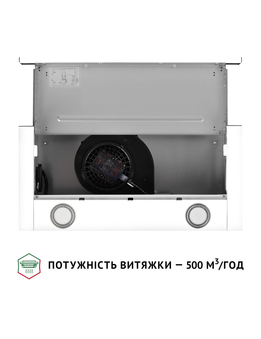 Освещение вытяжки состоит из двух LED-ламп, мощностью по 1.5 Вт, которые расположены на задней части вытяжки и способствуют лучшему освещению рабочей поверхности. Подсветка является комфортной для глаз и работает как дополнительный источник освещения на кухне. Рабочий ресурс светодиодов в разы выше, чем у обычных ламп, а потребление энергии минимальное. Кроме того, светодиоды достаточно выносливы во время активной эксплуатации.