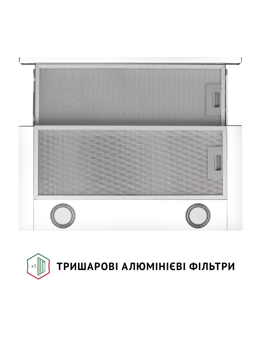 Вытяжка оборудована двумя трехслойными алюминиевыми фильтрами, которые эффективно защищают мотор и другие детали устройства от загрязнения жиром и испарениями. Их можно легко вымыть в теплой мыльной воде или в посудомоечной машине.