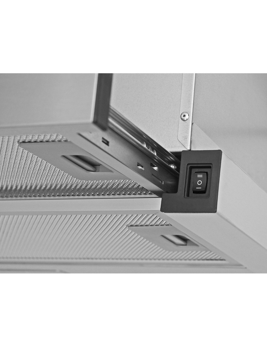 Телескопическая вытяжка, мощность 1000 м3/ч., ширина - 600 мм. Цвет вытяжки/выдвижной панели - нержавеющая сталь. Материал вытяжки/выдвижной панели - крашеный металл. Управление механическое, переключатель сбоку. 2 скорости. 1 мотор. Освещение 1х2 Вт. LED. Алюминеевый фильтр. Отвод/Рециркуляция. Уровень шума 52-64 Дб