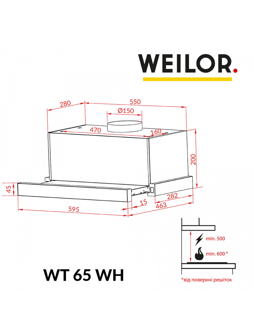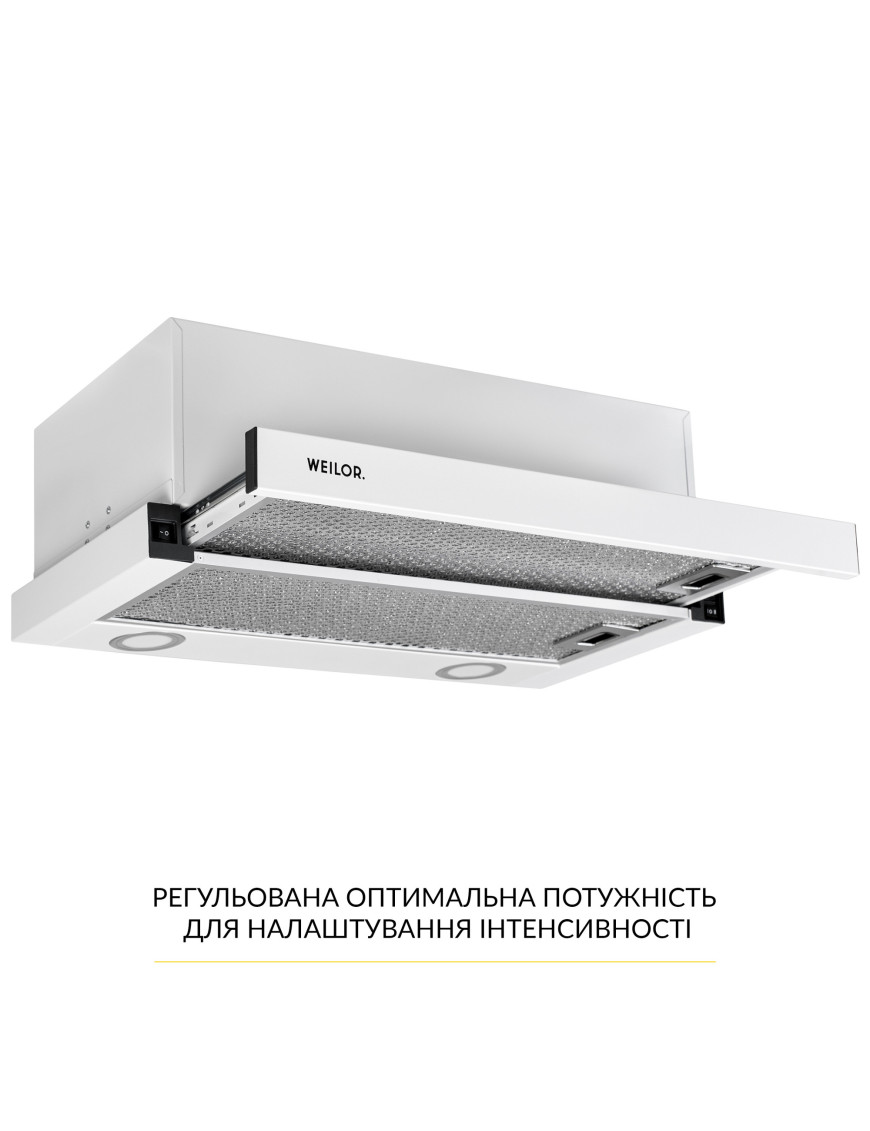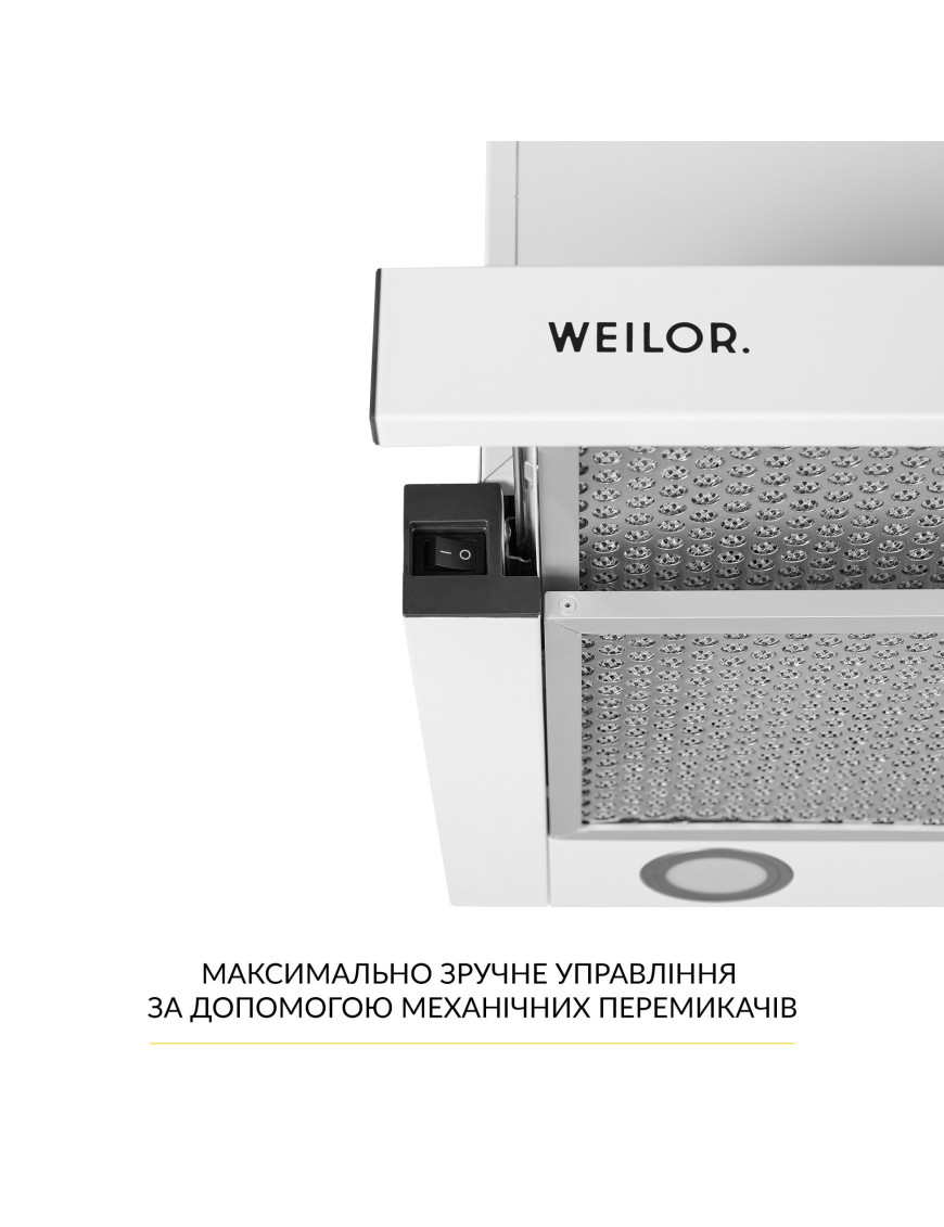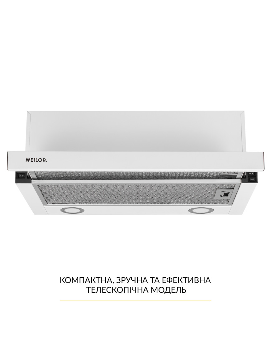 Благодаря великолепной эргономике, которой наделена вытяжка WEILOR WT 65 WH, она подойдет к любой кухне. Дизайн телескопических вытяжек привлекателен за счет простоты и лаконичности. Вытяжка данной модели придаст элегантности вашему интерьеру, а также некоторой утонченности и стиля. Практически весь корпус телескопической вытяжки спрятан внутри навесного модуля, а на виду остается только декоративная выдвижная панель.