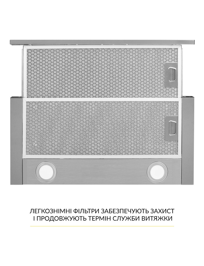 Кроме фильтрации воздуха, вытяжка обеспечивает подсветку варочной поверхности. Это создает еще больше удобств на кухне, если потолочного освещения недостаточно. Спереди на нижней панели кухонной вытяжки расположена две LED-лампы мощностью по 1.5 Вт. Срок службы таких ламп может превышать 50 000 часов. Они наиболее экономно расходуют электроэнергию, излучая при этом достаточно яркий световой поток, безвредный для зрения.