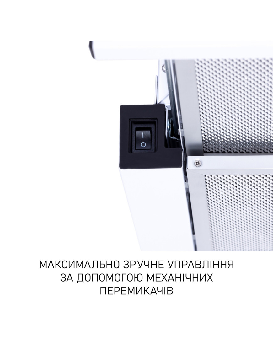 Механическая панель управления очень проста и интуитивно понятна. На ней расположены переключатели для включения/выключения вытяжки, освещения и переключения скоростей. Активировать нужную функцию можно одним нажатием. Механические переключатели управления наиболее надежные и долговечные.