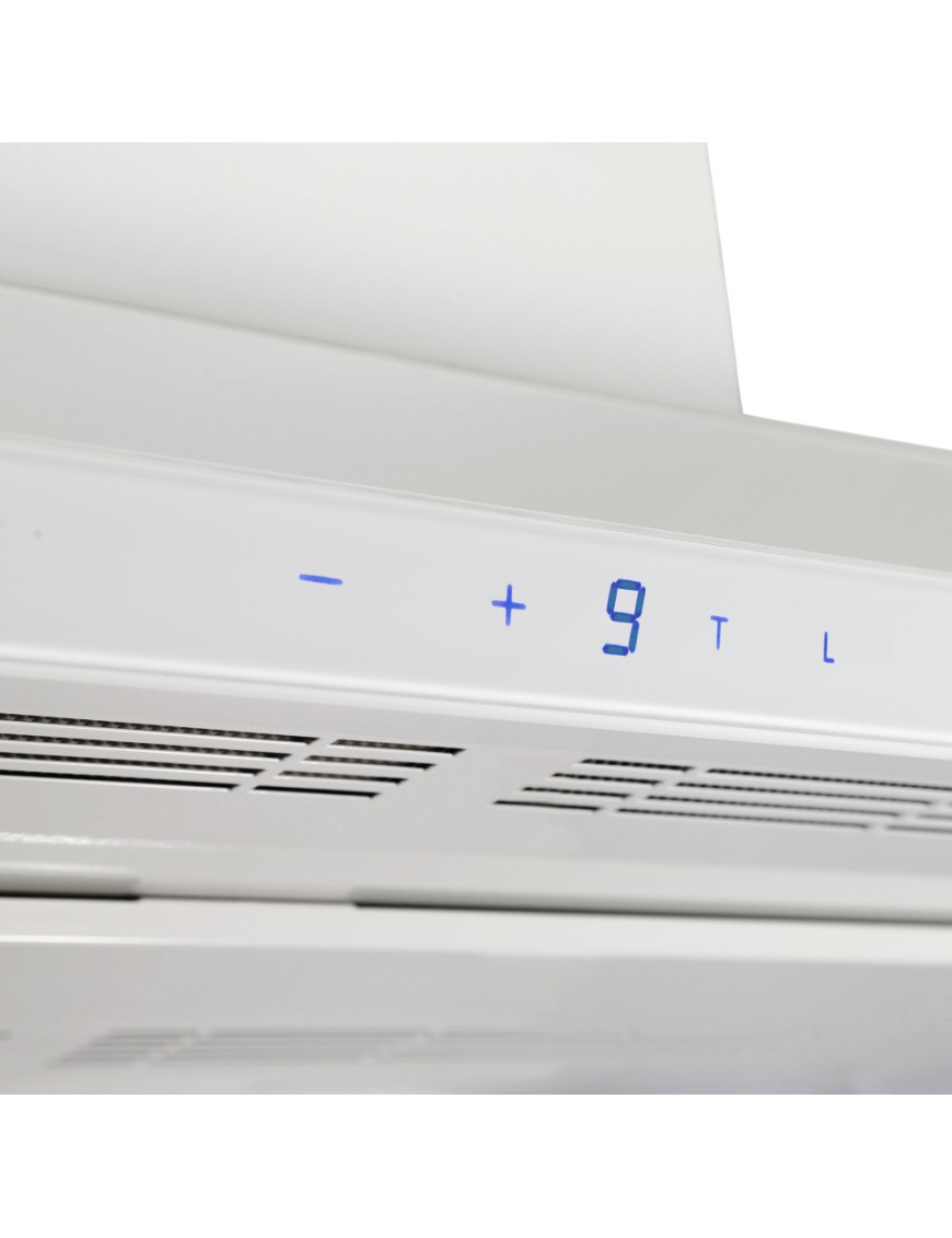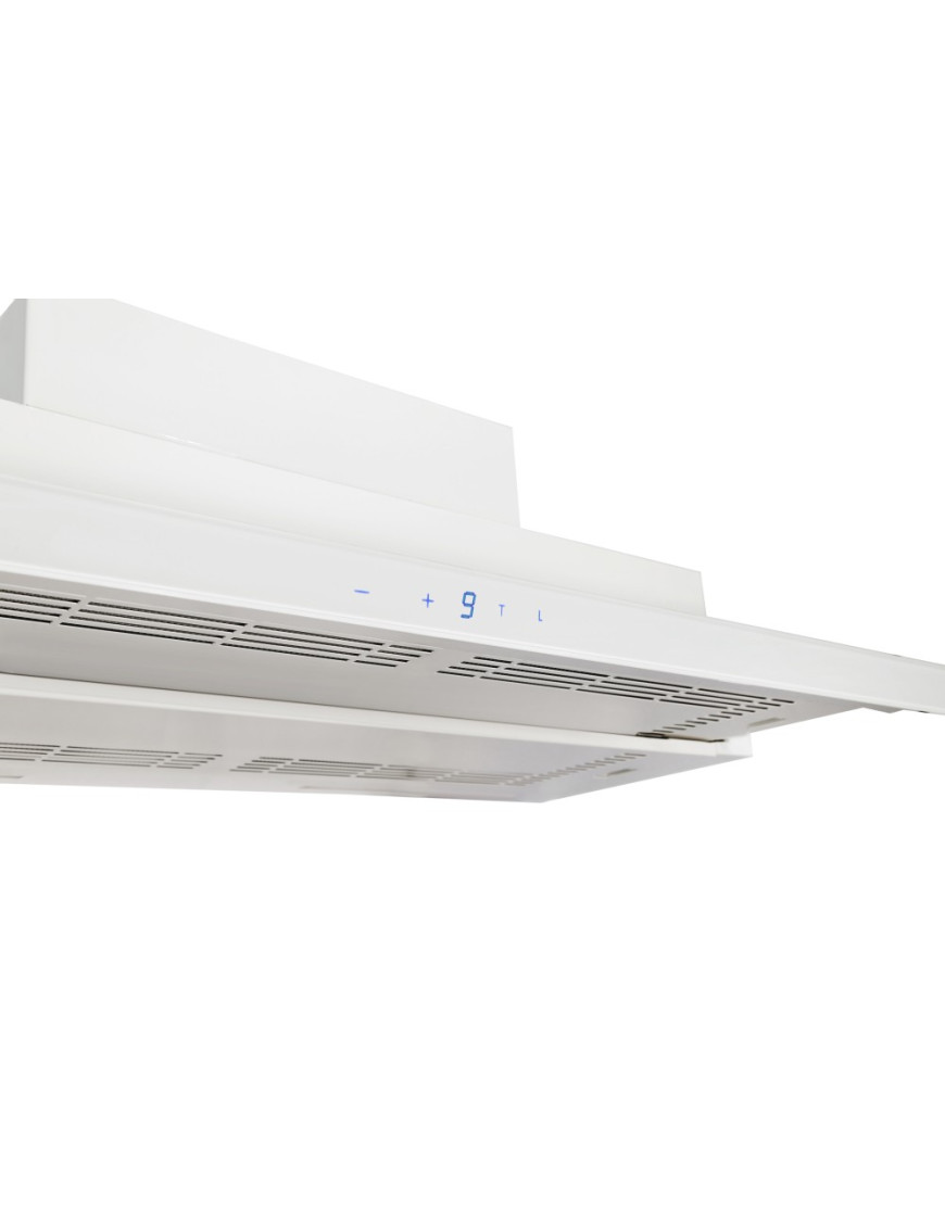 Телескопическая вытяжка, мощность: 1200 м3/час. Ширина 900 мм. Цвет - белое закаленное стекло. Управление сенсорное. Таймер. 4 скорости. Освещение: LED-полоса 2x2,1 Вт. Алюминиевый фильтр Арт. 0008 (необходимое количество в вытяжке - 4 шт.). Режим работы: Отвод/рециркуляция.Уровень шума: 55 Дб. Опциональный Угольный Фильтр Арт. 0029