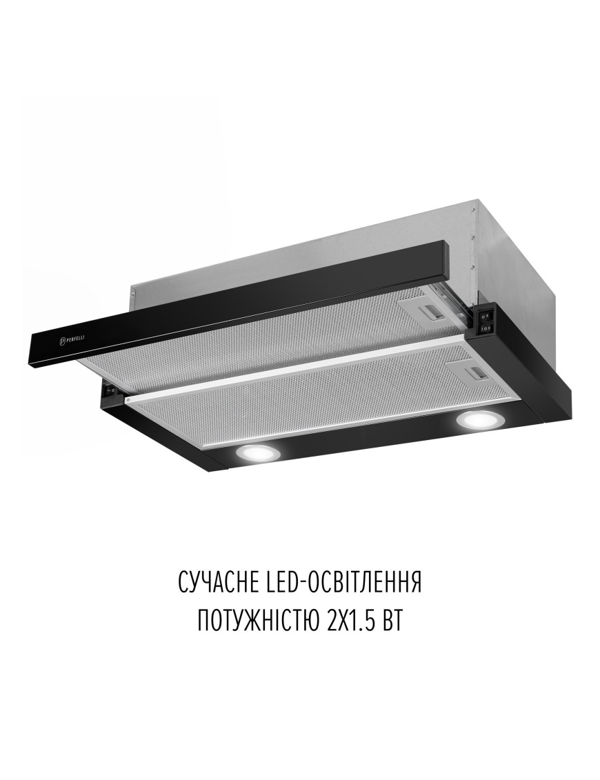 Телескопическая кухонная вытяжка Perfelli TL 6622 BL 1000 LED обладает эргономичными свойствами, поэтому позволяет рационально использовать пространство в зоне над варочной поверхностью. Конфигурация модели включает:
