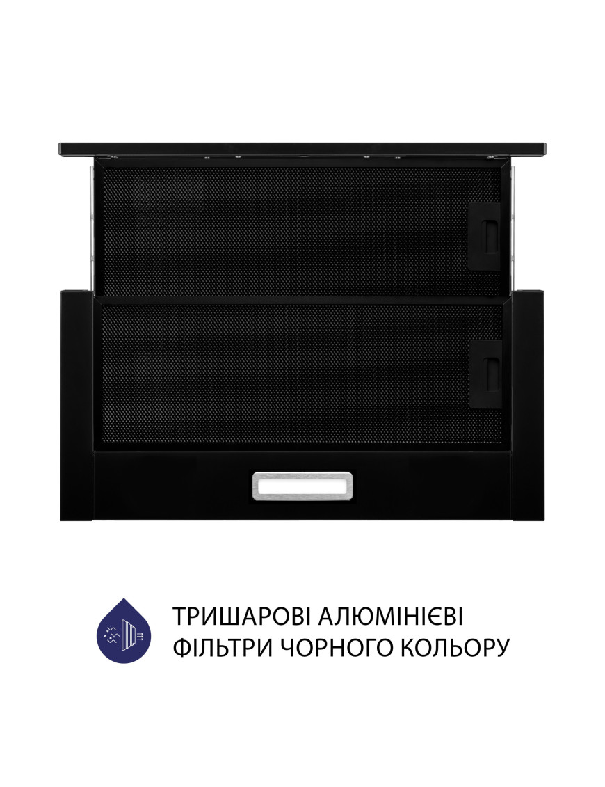 Телескопическая вытяжка станет функциональным и стильным дополнением вашей кухни. За счет конструкции модели короб прячется в шкаф, поэтому видно будет только декоративную выдвижную панель Модель имеет надежные жировые алюминиевые фильтры черного цвета, которые состоят из трех слоев. Они препятствуют попаданию жира и испарений внутрь вытяжки. Благодаря этому мотор защищен, а потому прослужит вам значительно дольше Мощность вытяжки - 700 м3/час. Она эффективно освежит воздух в помещении, устранив испарения, дым и лишние запахи. В зависимости от интенсивности процесса приготовления, работу вытяжки можно регулировать, выбирая нужный режим Модель оборудована современной LED-лампой мощностью 2 Вт. Этого достаточно, чтобы использовать ее как дополнительное освещение варочной поверхности. Светодиоды комфортные для глаз, выносливые и экономные Удобные механические кнопки позволяют без усилий управлять вытяжкой. Основные преимущества такой панели - это надежность и простота в эксплуатации