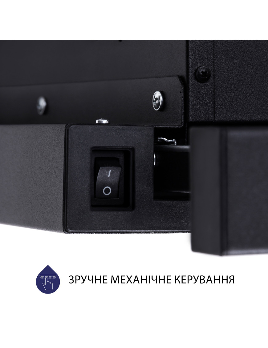 Вытяжка изготовлена из крашеного металла. Это делает эту модель вытяжки, идеально подходящей для вашей кухни. Механический переключатель управления расположен сбоку. На нем находятся кнопки переключения скоростей и включения/выключения освещения.
