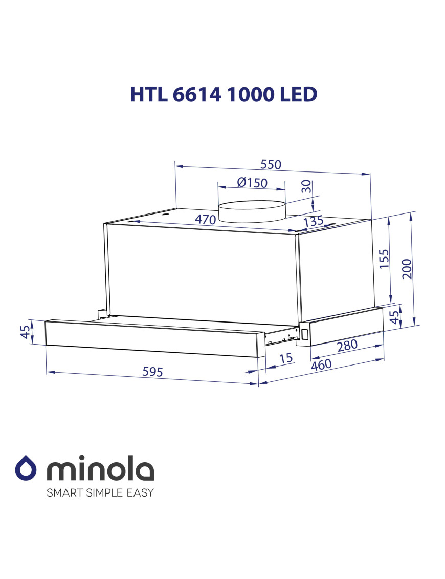 *Использование режима рециркуляции вытяжки возможно только после установки угольного фильтра, который продается отдельно. Для вашей вытяжки также можно подобрать подходящий угольный фильтр от производителя minola.ua.