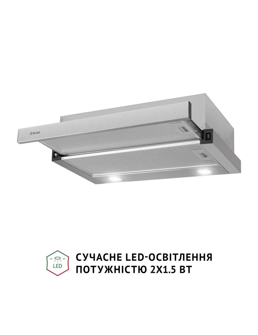 Телескопическая кухонная вытяжка Perfelli TL 602 I LED обладает эргономичными свойствами, поэтому позволяет рационально использовать пространство в зоне над варочной поверхностью. Конфигурация модели включает: