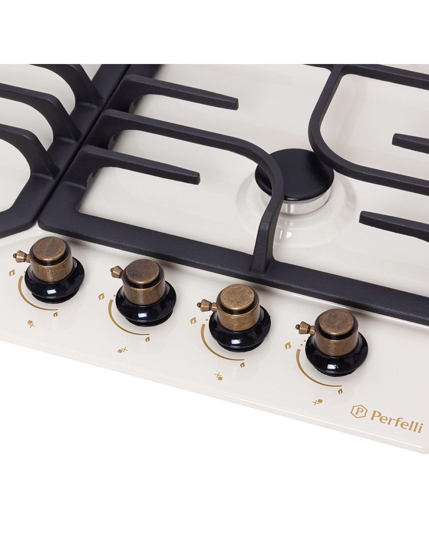 Газовая варочная поверхность Perfelli HGM 61664- идеальное соотношение качественных комплектующих и функциональности. Retro стиль всегда удивляет и восхищает своей независимостью. Он остается современным в любое время года и сезон и по сегодняшний день. Материал поверхности изготовлен из эмалированного металла. Варочная панель оборудована четырьмя газовыми горелками: одной WOK с мощностью - 3.8 кВт, двумя средней мощности и одной вспомогательной. Прибор оснащен функцией электроподжига в ручках управления, WOK горелкой и системой безопасности "газ-контроль" - для вашего удобства в приготовлении блюда. Эргономичное расположение горелок обеспечивает дополнительный комфорт при использовании нескольких зон одновременно. Также большим плюсом будут долговечные и устойчивые к деформации чугунные решетки в количестве двух штук. Они легко снимаются и очищаются.