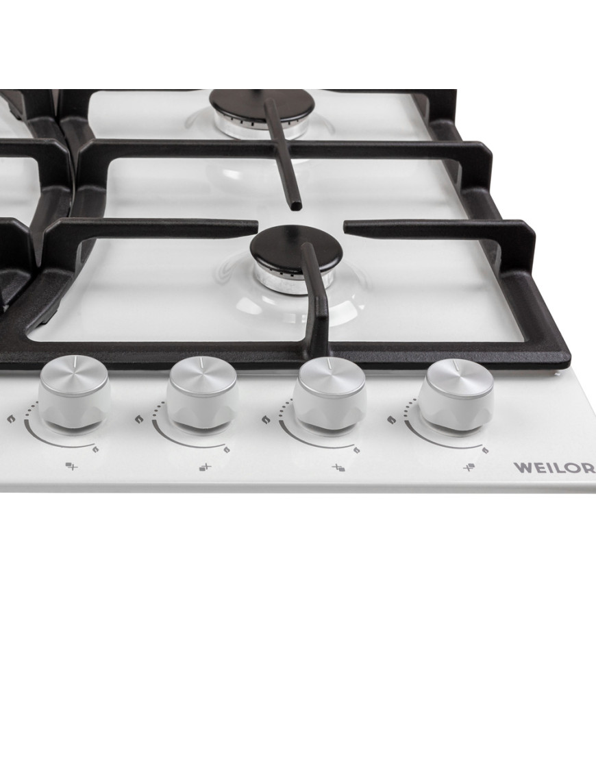 - Варочные поверхности Weilor оснащены системой "газ-контроль", которая автоматически блокирует подачу горючего вещества при отсутствии пламени и обеспечивает максимальную безопасность пользования прибором.