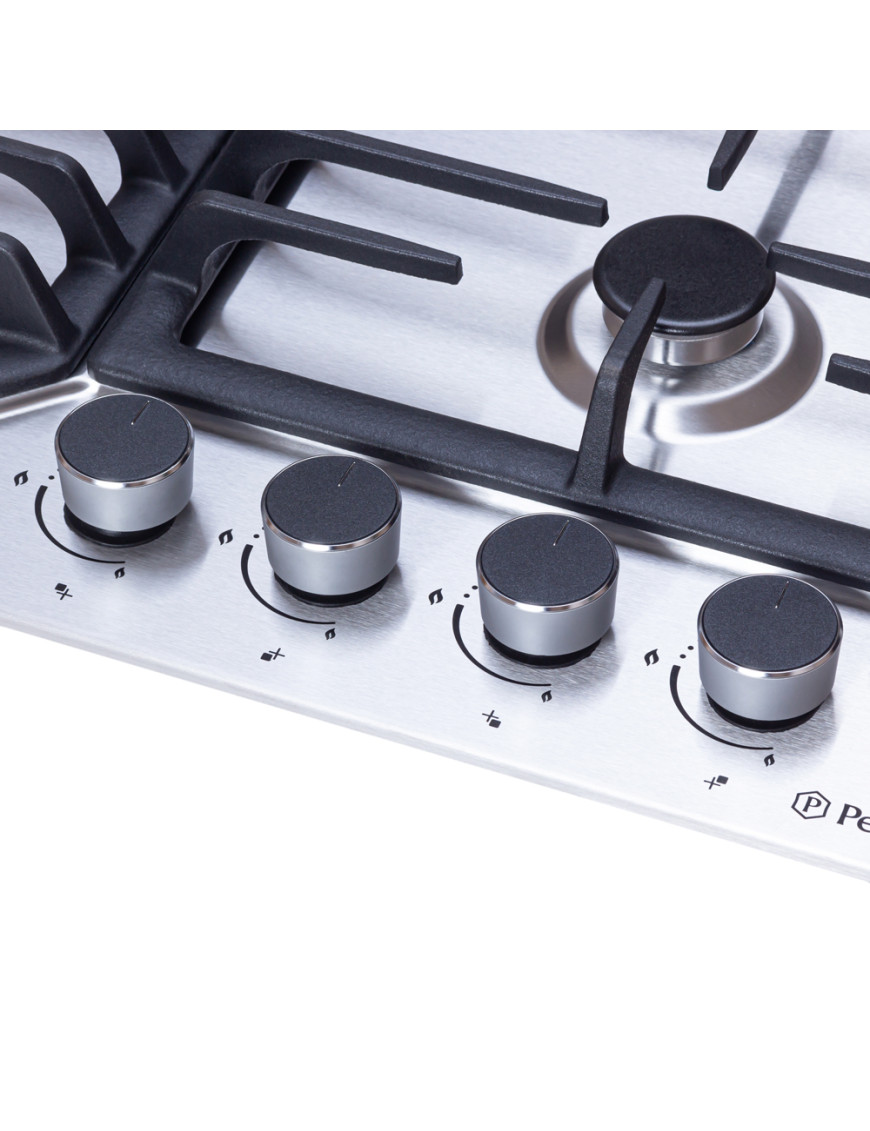 Газовая варочная поверхность Perfelli HGM 61694 - идеальное соотношение качественных комплектующих и функциональности. Материал поверхности изготовлен из нержавеющей стали. Варочная панель оборудована четырьмя газовыми горелками: одной WOK с мощностью - 3.8 кВт, двумя средней мощности и одной вспомогательной. Прибор оснащен функцией электроподжига в ручках управления, системой безопасности "газ-контроль", а также WOK горелкой - для вашего удобства в приготовлении блюда. Эргономичное расположение горелок обеспечивает дополнительный комфорт при использовании нескольких зон одновременно. Также большим плюсом будут долговечные и устойчивые к деформации чугунные решетки в количестве двух штук. Они легко снимаются и очищаются.