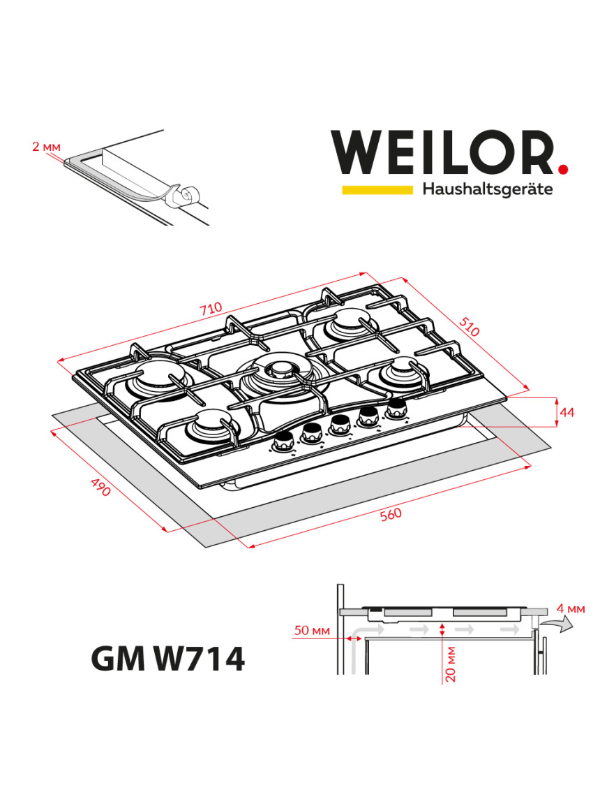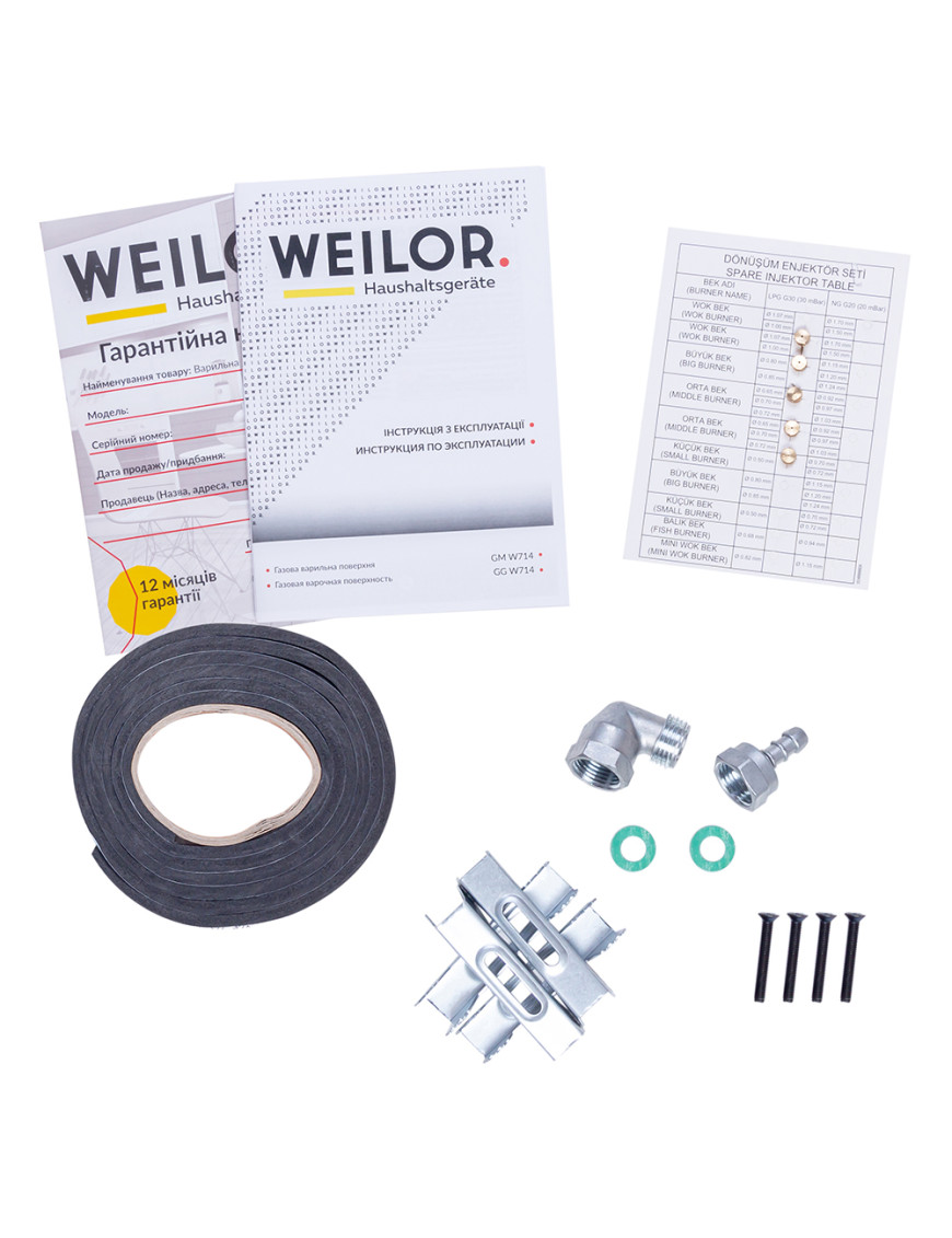 - Варочные поверхности Weilor оснащены системой "газ-контроль", которая автоматически блокирует подачу горючего вещества при отсутствии пламени и обеспечивает максимальную безопасность пользования прибором.