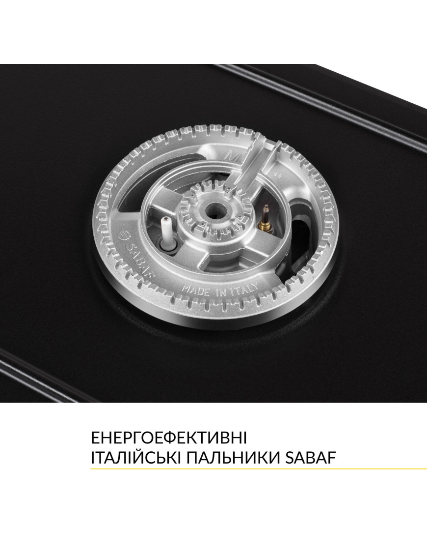 - Кварочная поверхность оборудована одной конфоркой. Это WOK-конфорка SABAF с высокой мощностью - 3.8 кВт/ч, которая имеет два ряда пламени. Она изготовлена из итальянских комплектующих. Главные преимущества горелок SABAF это высокая энергоэффективность, надежность и долговечность. WOK-конфорка с двумя рядами пламени позволяет готовить блюда значительно быстрее, потому что она нагревает блюдо сильнее, при этом распределяя тепло равномерно. Это позволяет готовить блюда с большим количеством ингредиентов и использовать более широкий выбор рецептов. Геометрия индивидуальной решетки варочной поверхности, изготовленной из высококачественного чугуна, идеально дополнит интерьер вашего кухонного помещения. Чугун легко очистить от загрязнений, которые образовались в процессе приготовления пищи.