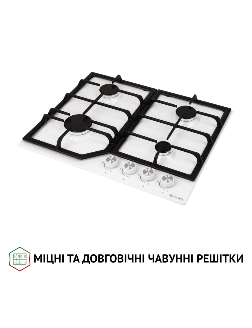 Газовая поверхность на металле Perfelli HGM 61424 WH оборудована 4-мя конфорками разной мощности. Она станет вашей надежной помощницей в приготовлении вкусных блюд. Стандартная ширина позволяет удобно расположить варочную поверхность как на стандартной кухне, так и на маленькой.