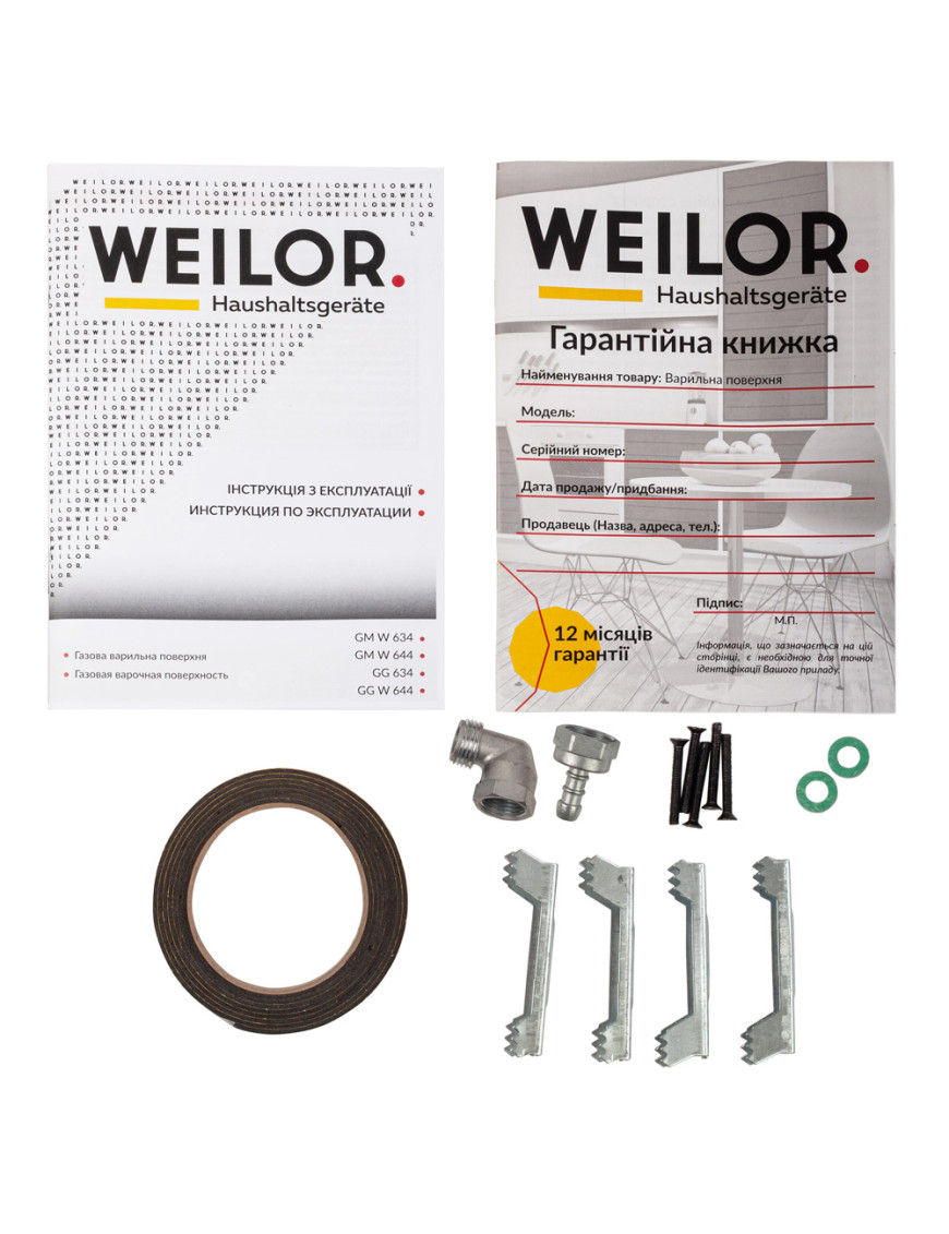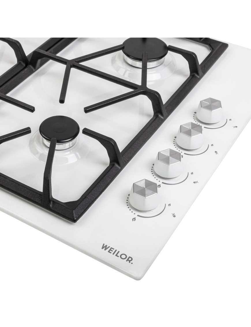 - Варочные поверхности Weilor оснащены системой "газ-контроль", которая автоматически блокирует подачу горючего вещества при отсутствии пламени и обеспечивает максимальную безопасность пользования прибором.