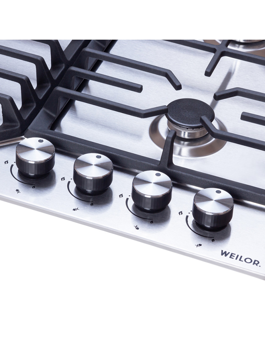 - Варочные поверхности Weilor оснащены системой "газ-контроль", которая автоматически блокирует подачу горючего вещества при отсутствии пламени и обеспечивает максимальную безопасность пользования прибором.
